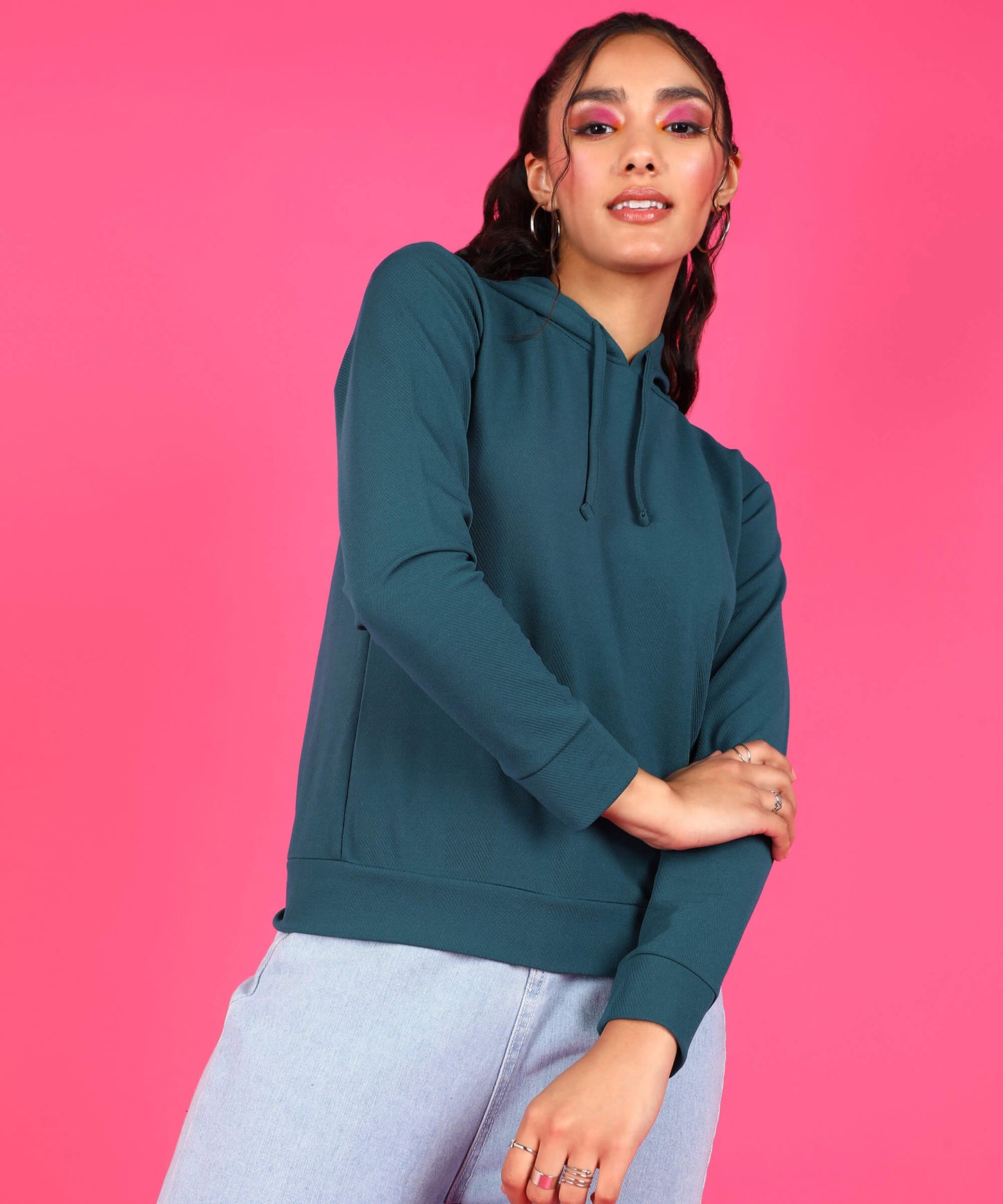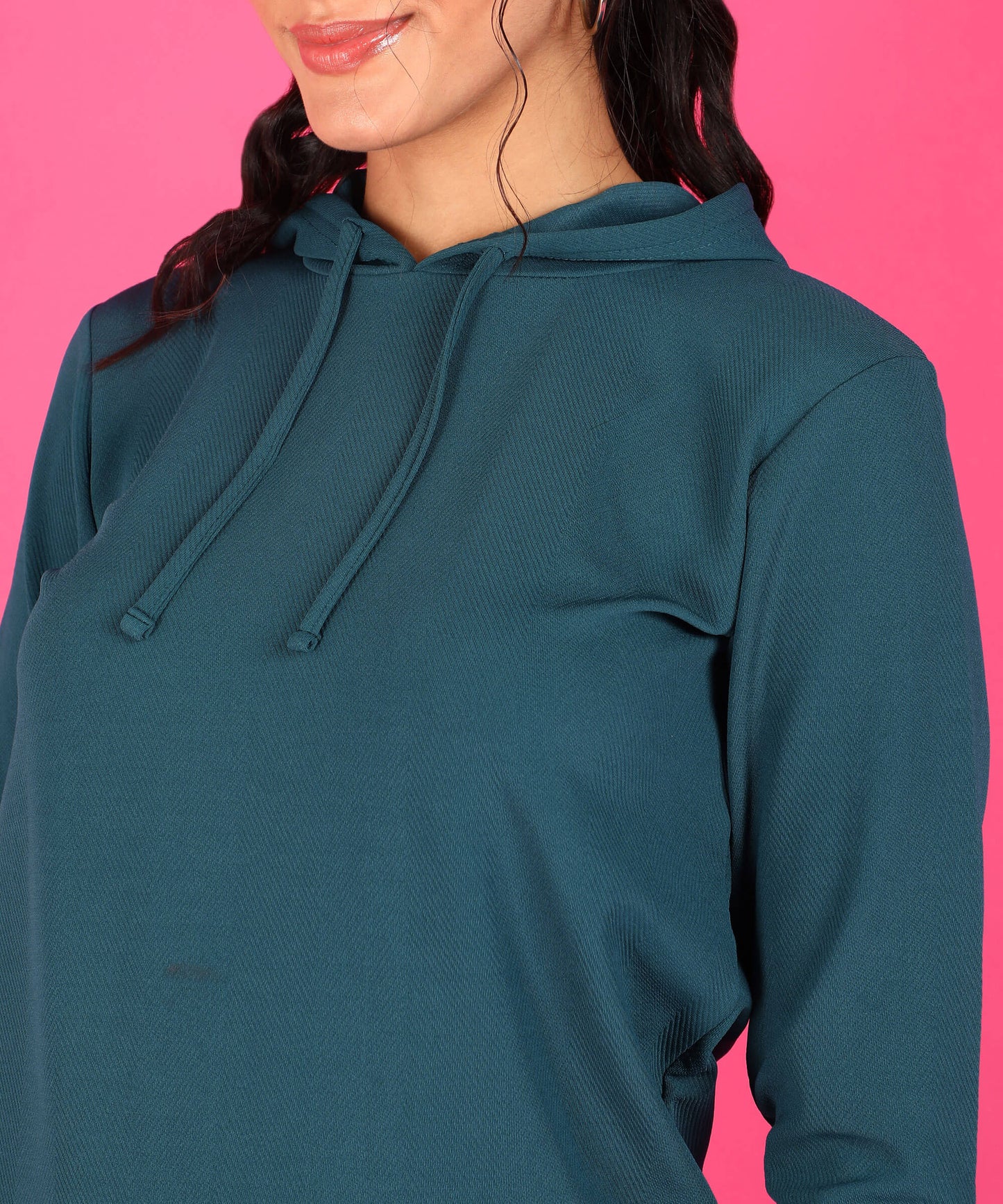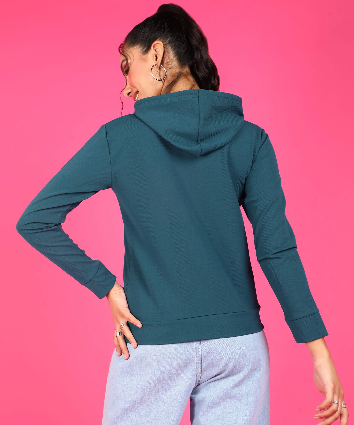 Popwings Women Casual Solid Hooded Sweatshirt