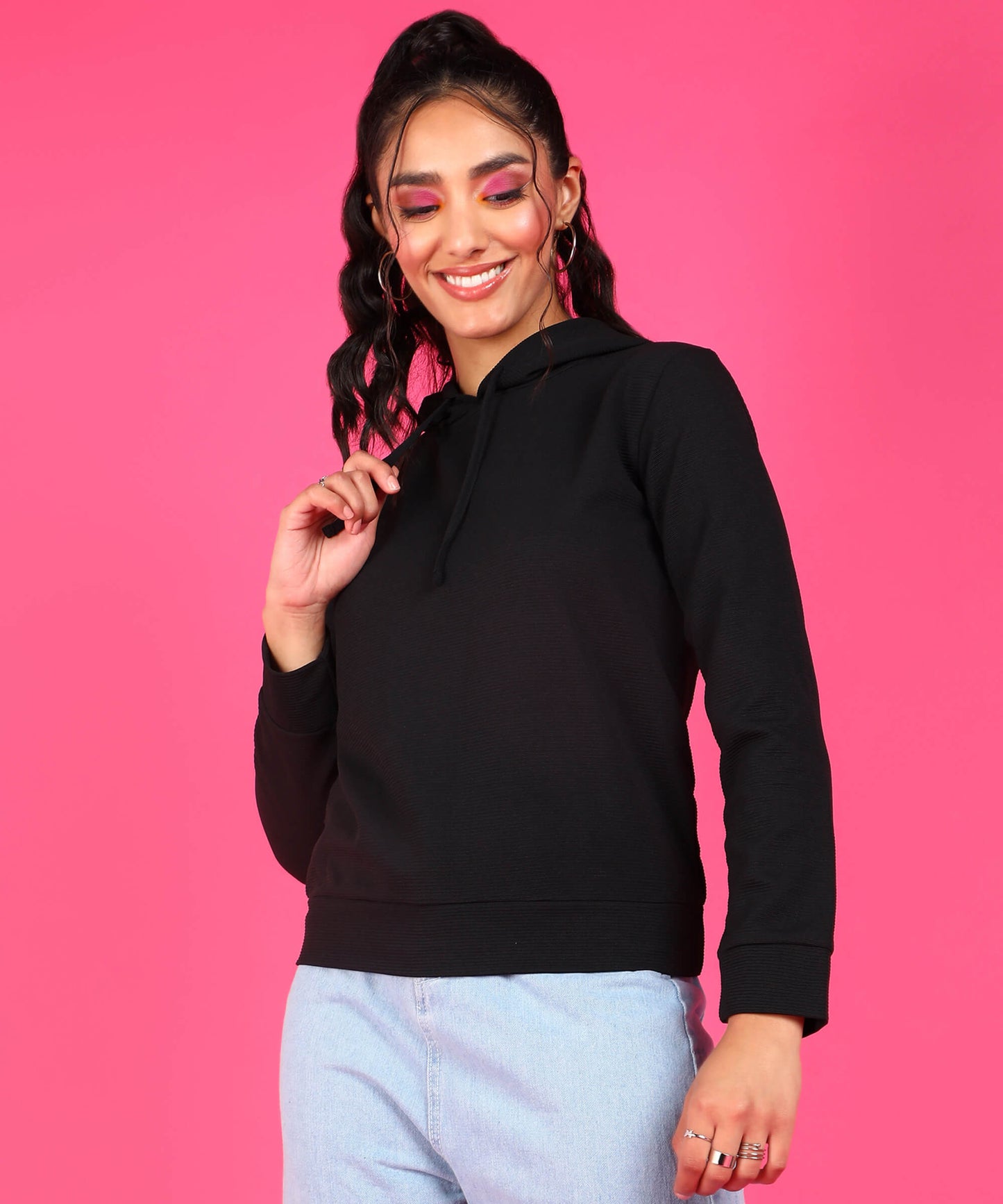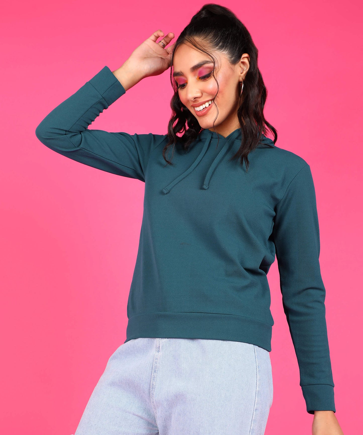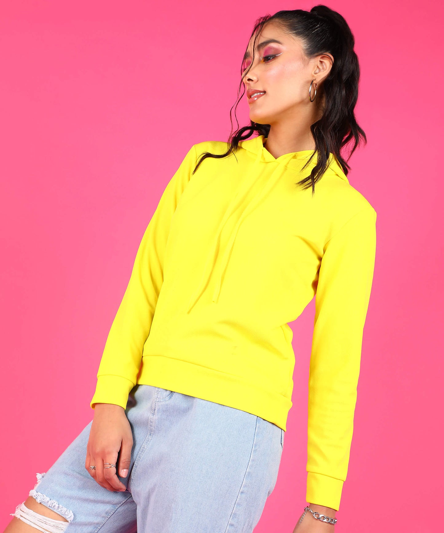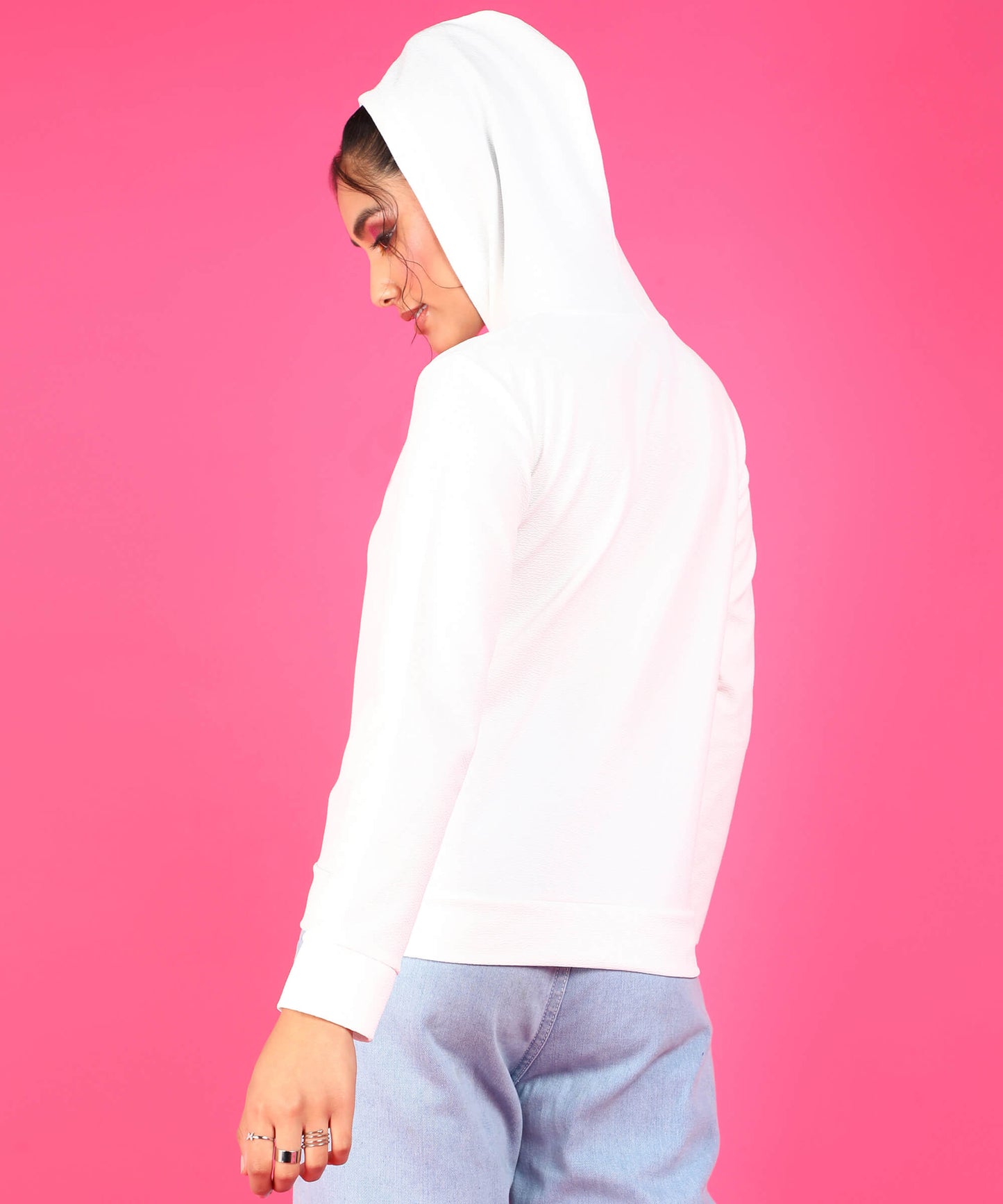 Popwings Women Casual Solid Hooded Sweatshirt