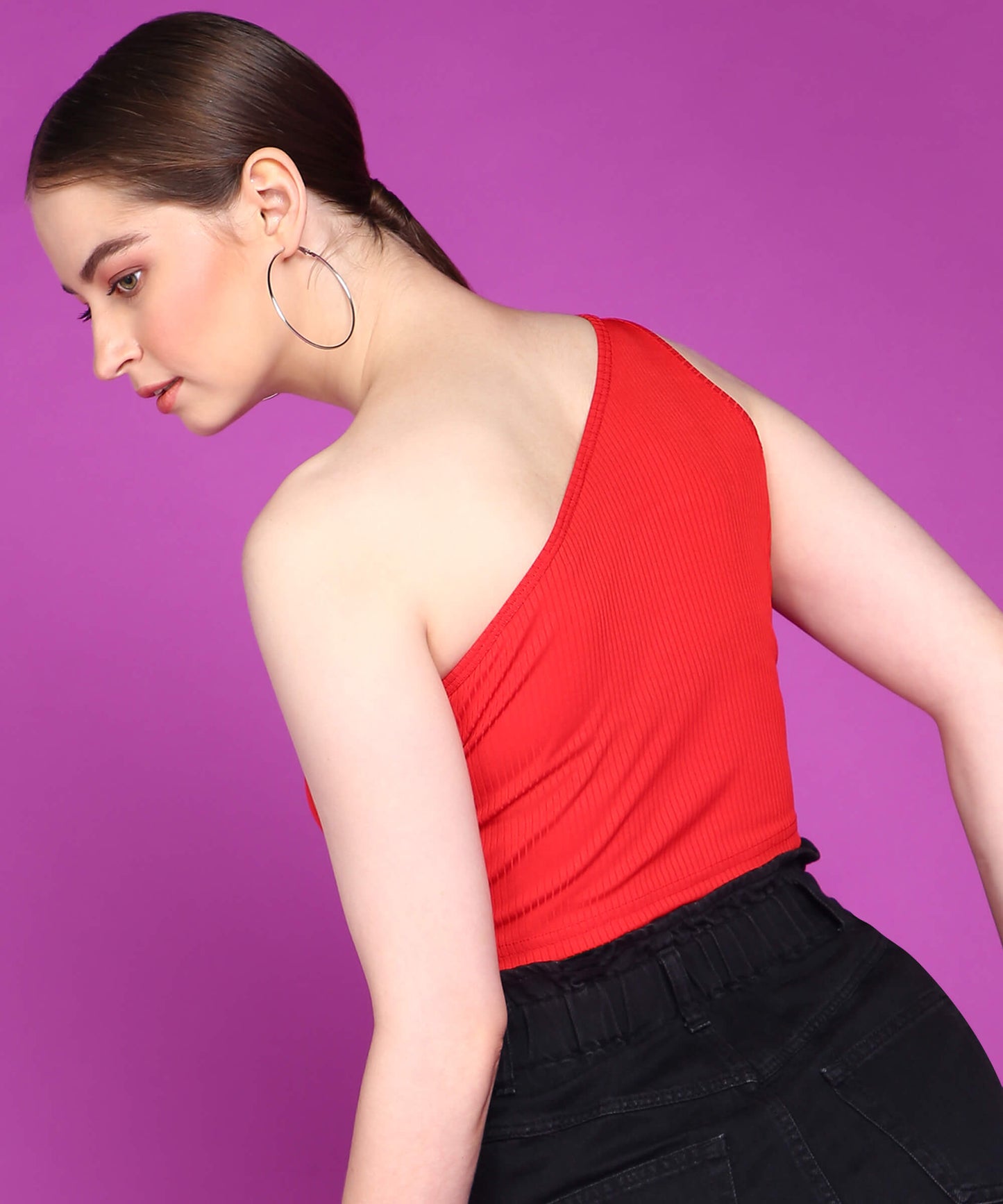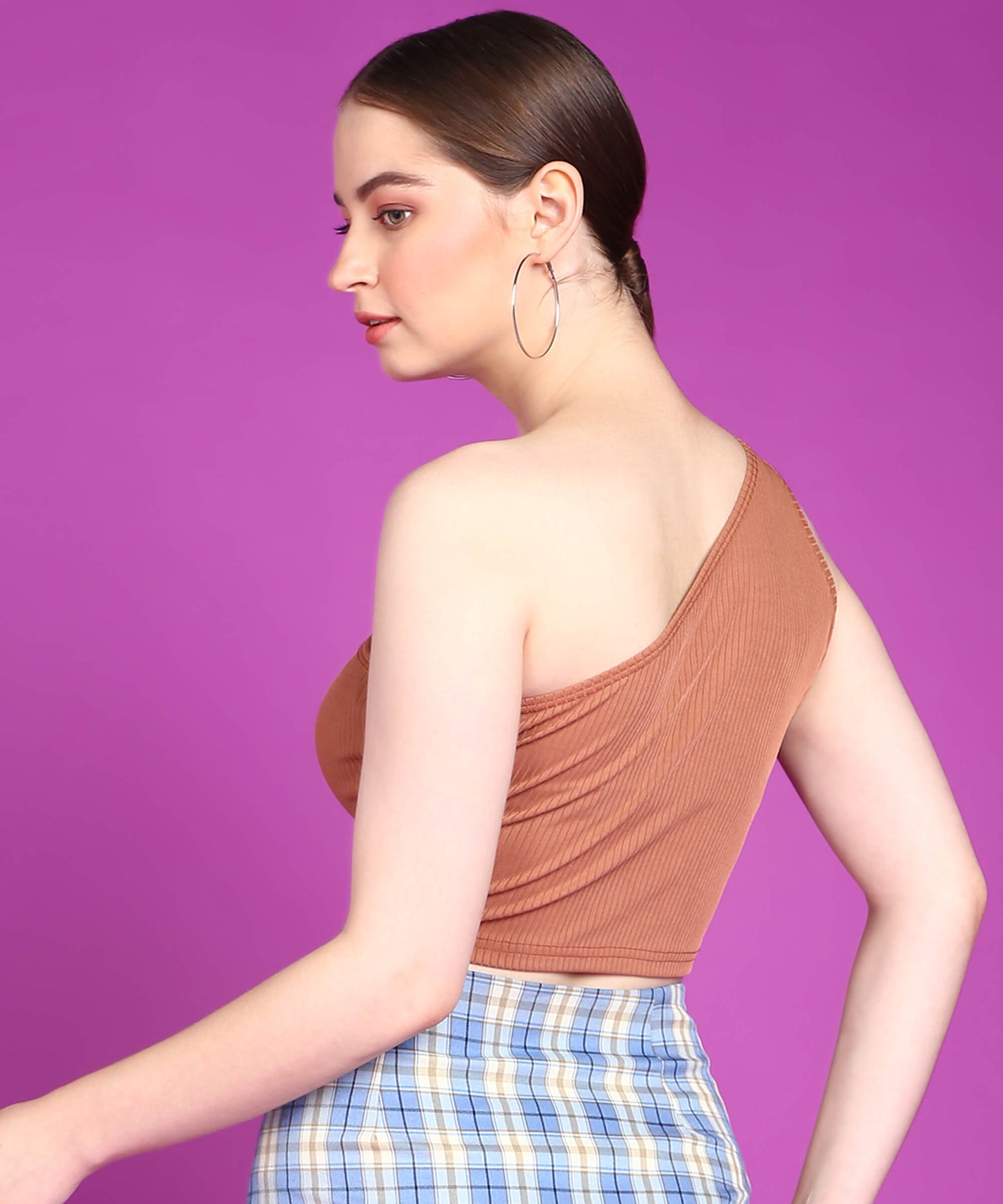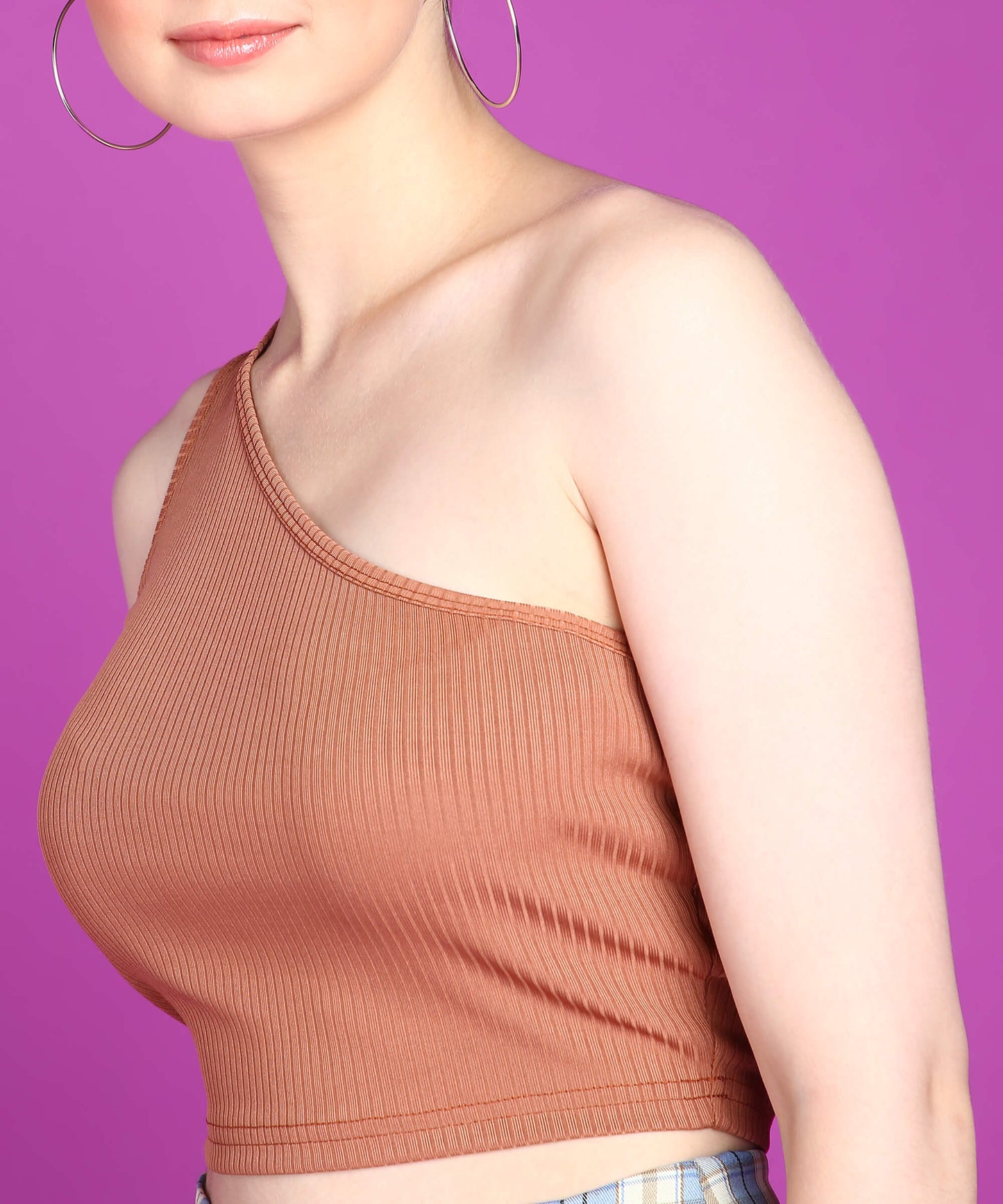 Introducing our Gorgeous Rib One-Shoulder Crop Top for Women! Whether you're headed to a special event, a night out with friends, or a chic daytime affair, this crop top will ensure you stand out with its unique style. he asymmetrical one-shoulder cut adds a touch of drama and modernity to your ensemble. Flaunt your midriff and embrace a confident look that's perfect for various occasions. Crafted from a blend of soft and stretchy materials for a comfortable and body-hugging fit. Transform your wardrobe with the glamour of the Rib One-Shoulder Crop Top. Order now to experience the perfect blend of style and comfort