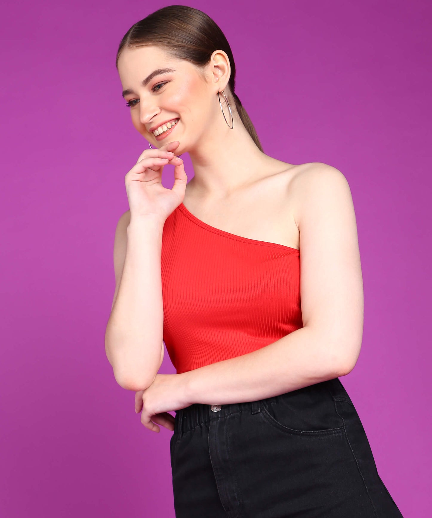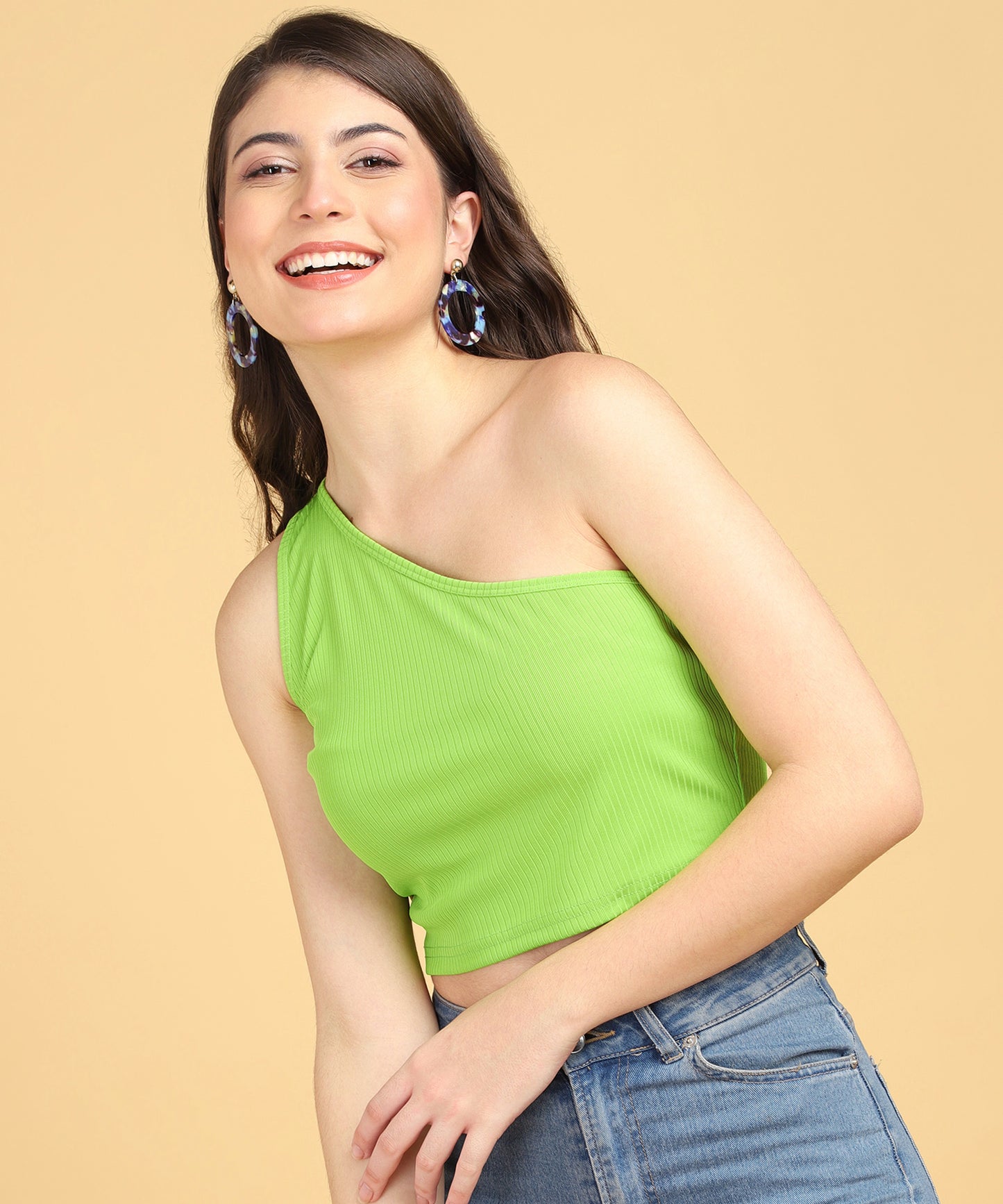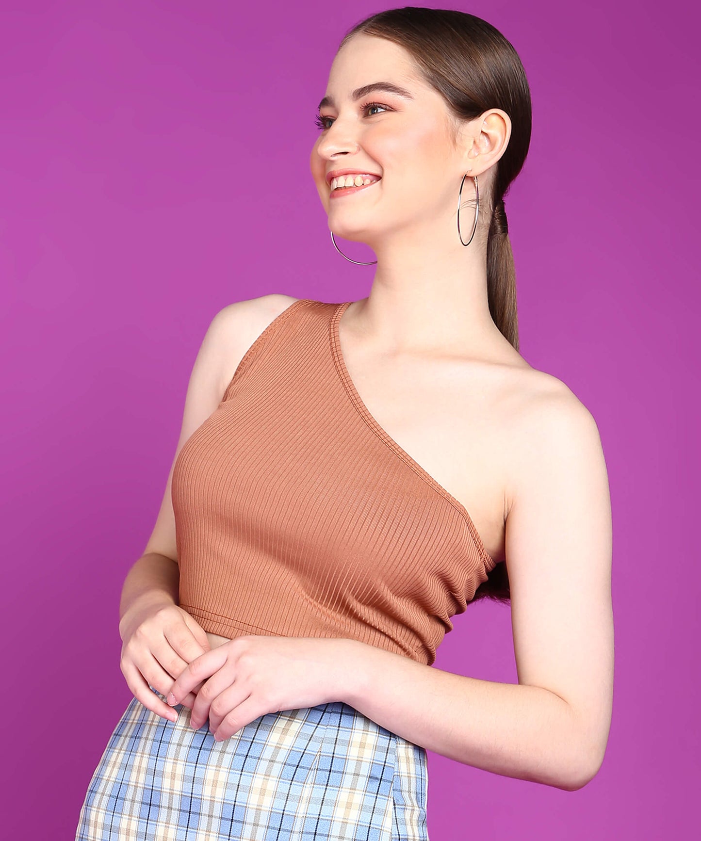 Introducing our Gorgeous Rib One-Shoulder Crop Top for Women! Whether you're headed to a special event, a night out with friends, or a chic daytime affair, this crop top will ensure you stand out with its unique style. he asymmetrical one-shoulder cut adds a touch of drama and modernity to your ensemble. Flaunt your midriff and embrace a confident look that's perfect for various occasions. Crafted from a blend of soft and stretchy materials for a comfortable and body-hugging fit. Transform your wardrobe with the glamour of the Rib One-Shoulder Crop Top. Order now to experience the perfect blend of style and comfort